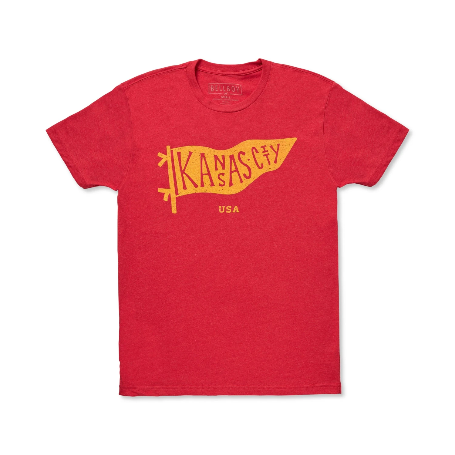 Bellboy Apparel’s classic Kansas City pennant design in gold on a super soft red tee.
