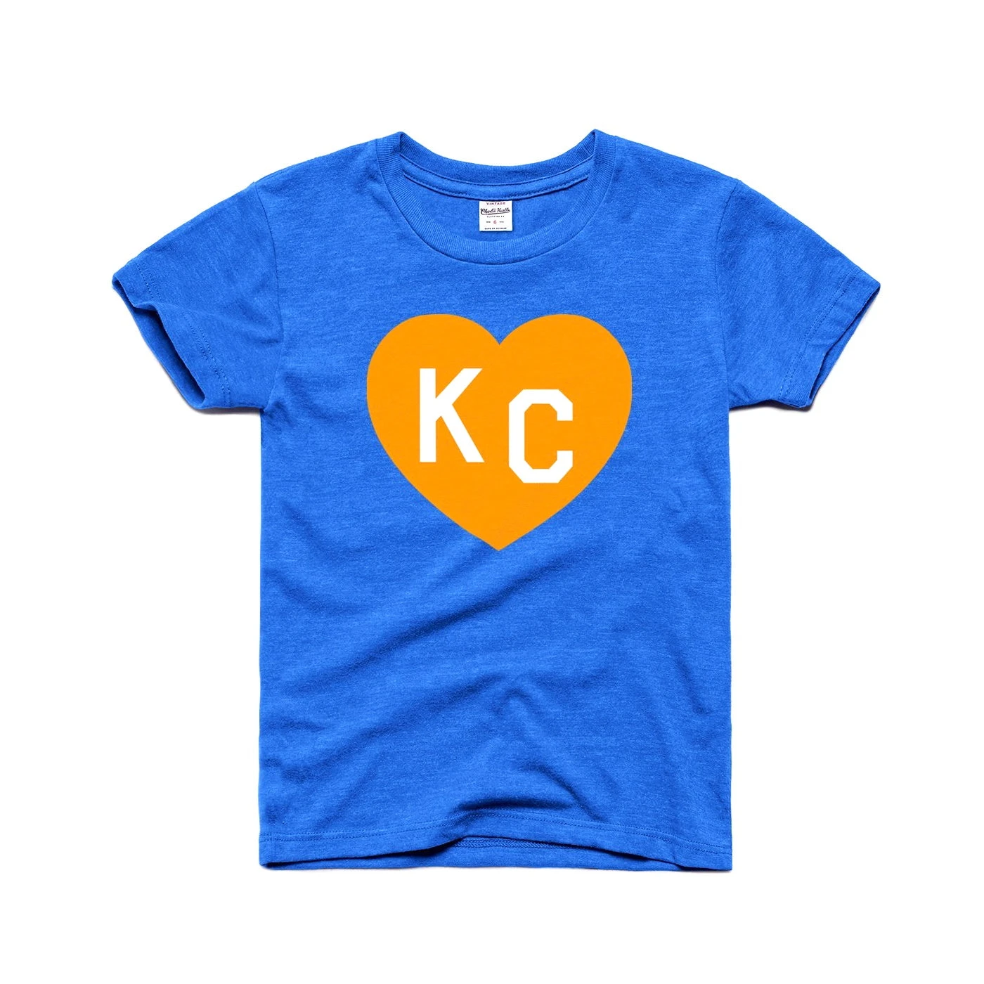 Adorable and super soft youth tee from Charlie Hustle, featuring their iconic KC heart design on a royal blue youth tee.