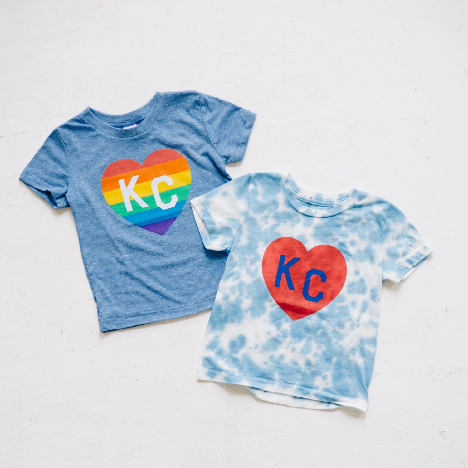 Get the kiddos decked out in pride gear with our classic KC heart tee in rainbow!
