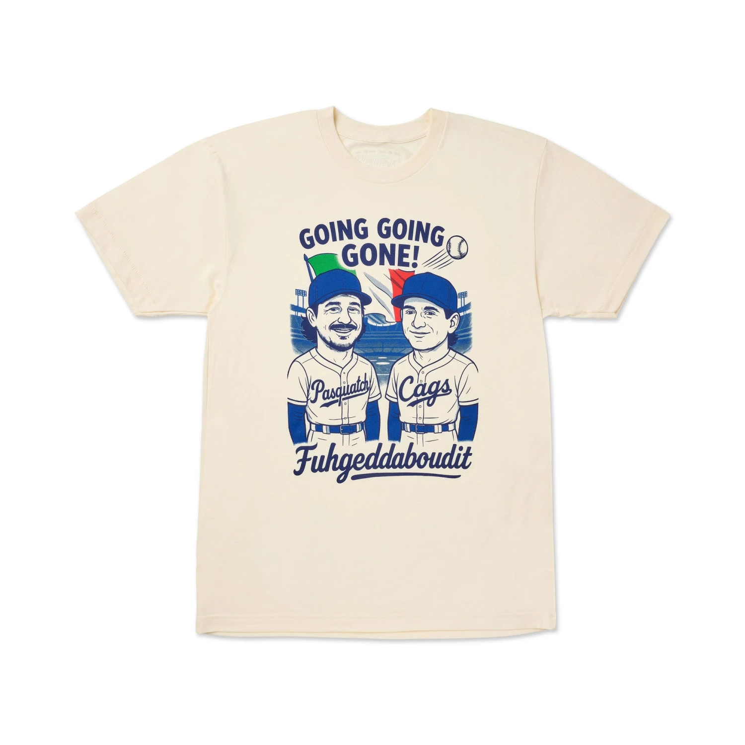 When these guys connect with the ball you can fuhgeddaboudit! Rep the Italian duo on this ultra soft cream colored tee.