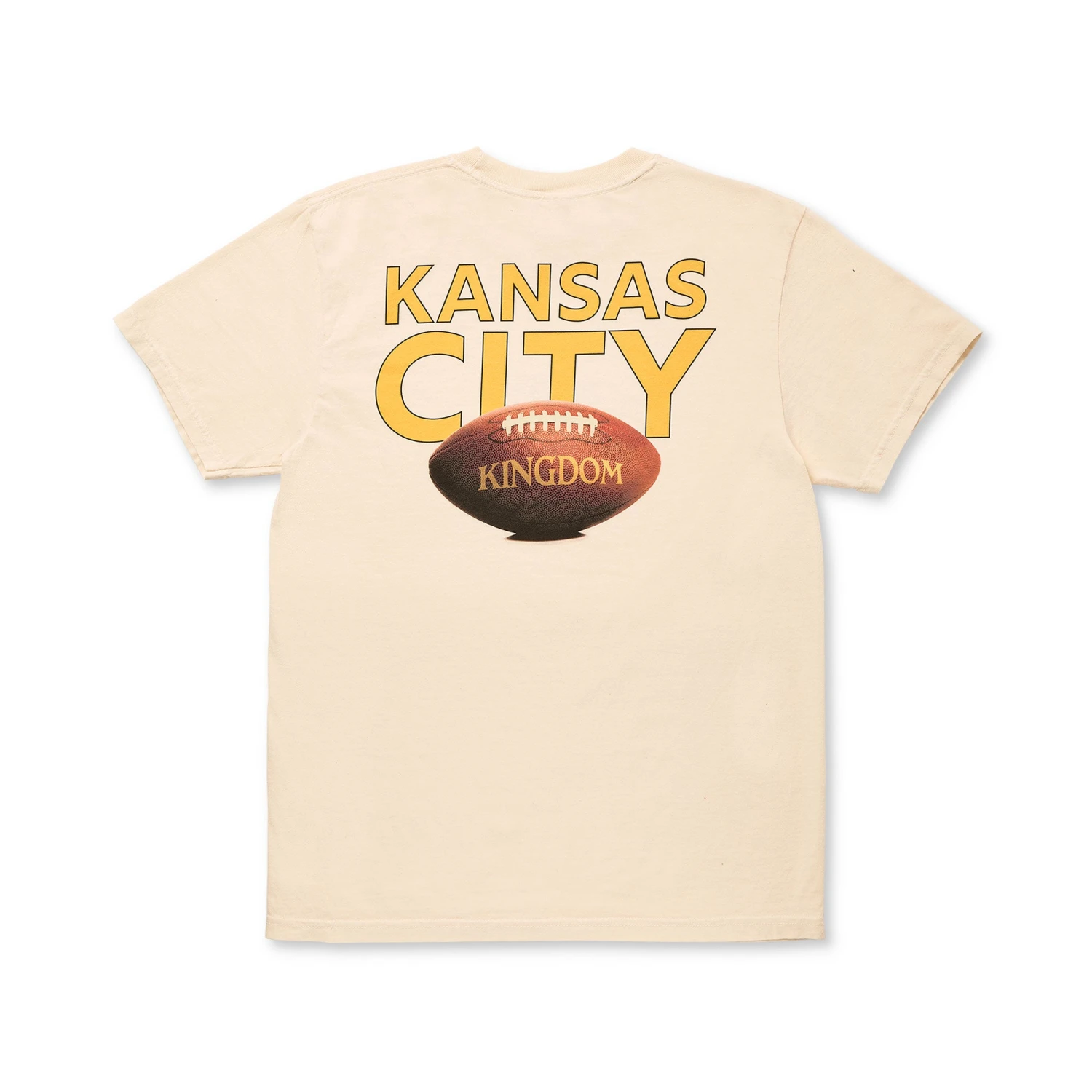 Cheer on our Kansas City team with this Kingdom tee from Sandlot. Block letters on the front and a large back detail with a vintage football design.