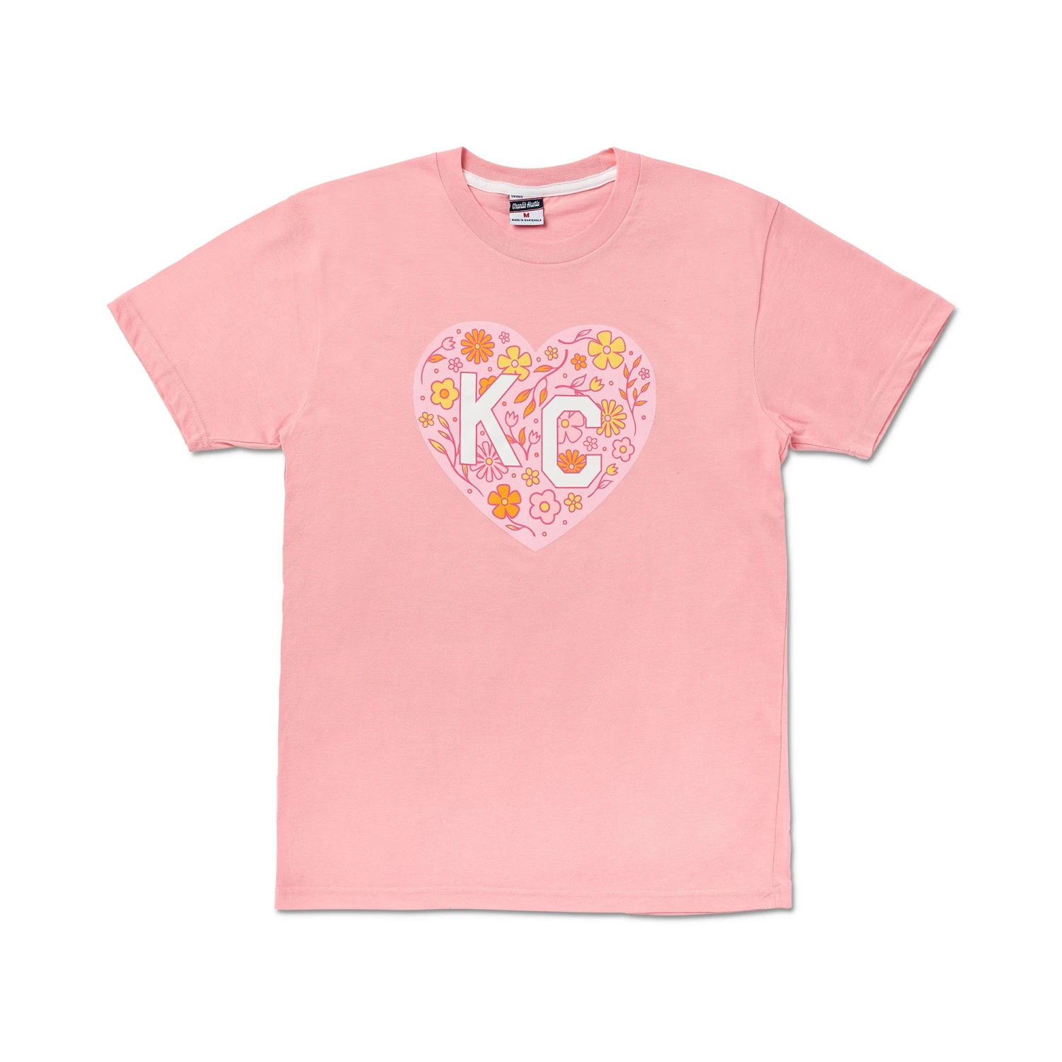Pink floral heart tee from Charlie Hustle. The perfect tee for spring and summer in Kansas City.