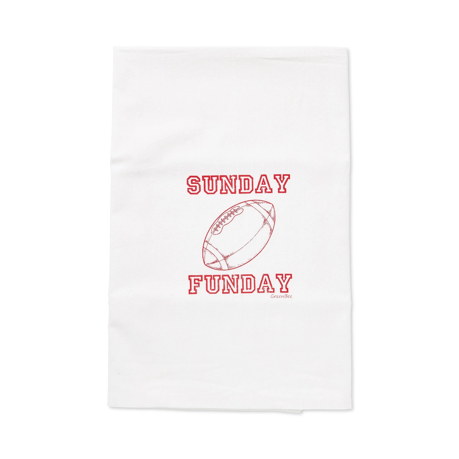 Kansas City football gameday dish towel from Green Bee. White with red lettering.