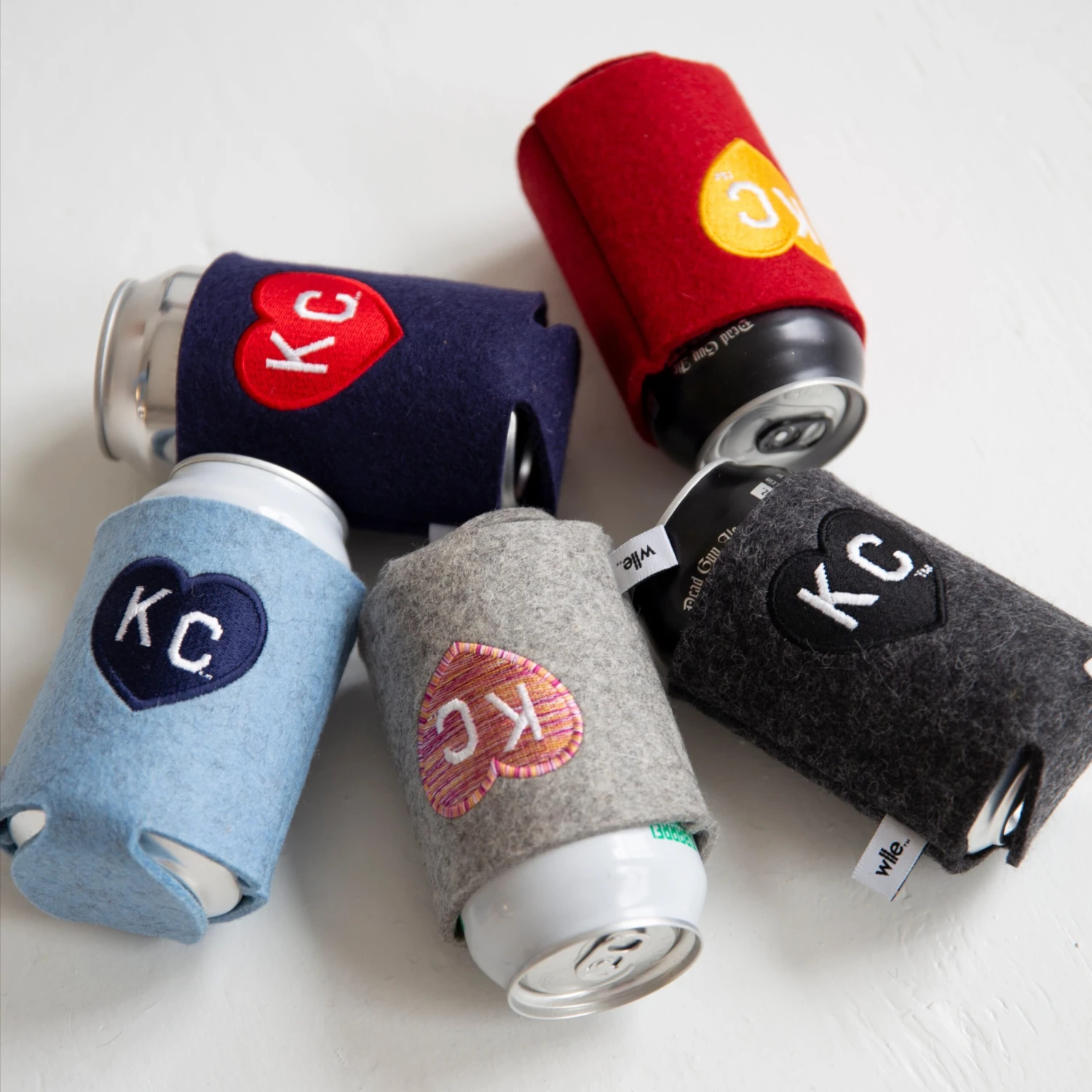 Made in collaboration with Carlie Hustle and The Kansas City Original wlle™ this KC Heart Drink Sweater harnesses the natural insulating powers of 100% wool to keep your drink cold and your hand feeling good. This navy and red drink insulator is durable, packable, and fits most standard cans.